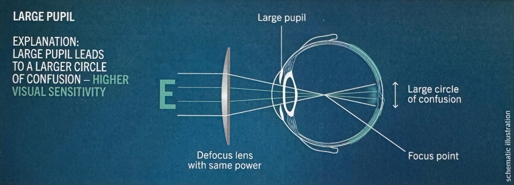 1.Lens aberration : ความผิดปกติหรือข้อจำกัดในการรวมแสงของเลนส์ ซึ่งส่งผลให้ภาพที่ปรากฏบนจอประสาทตาไม่คมชัดเท่าที่ควร แม้ค่ากำลังเลนส์ (dioptric power) จะถูกคำนวณอย่างถูกต้องแล้วก็ตาม ความคลาดแสงสามารถเกิดได้จากหลายปัจจัย เช่น: