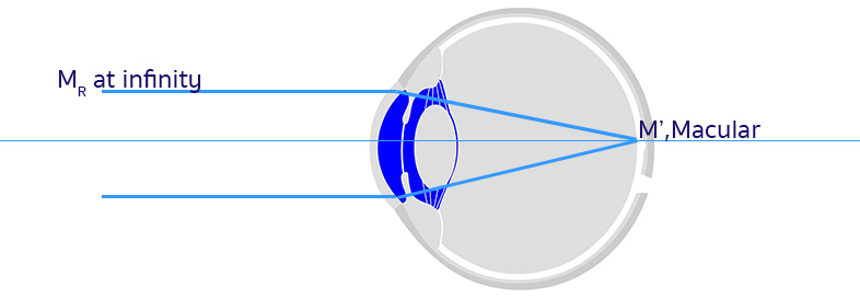 ดังนั้น คนไม่มีสายตานั้นมี true far point (MR) เป็นอนันต์ จึงสามารถมองเห็นไกลชัดได้ถึงระยะอนันต์